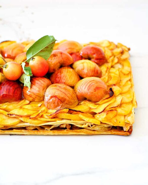 Wer es nicht sowieso schon erahnt hat: Diese Tarte ist eindeutig eine GRÖSSERE Baustelle. Man muss Zucker karamellisieren, die Äpfel in passende Stücke schneiden, die Strudelteigblätter ausziehen,…
